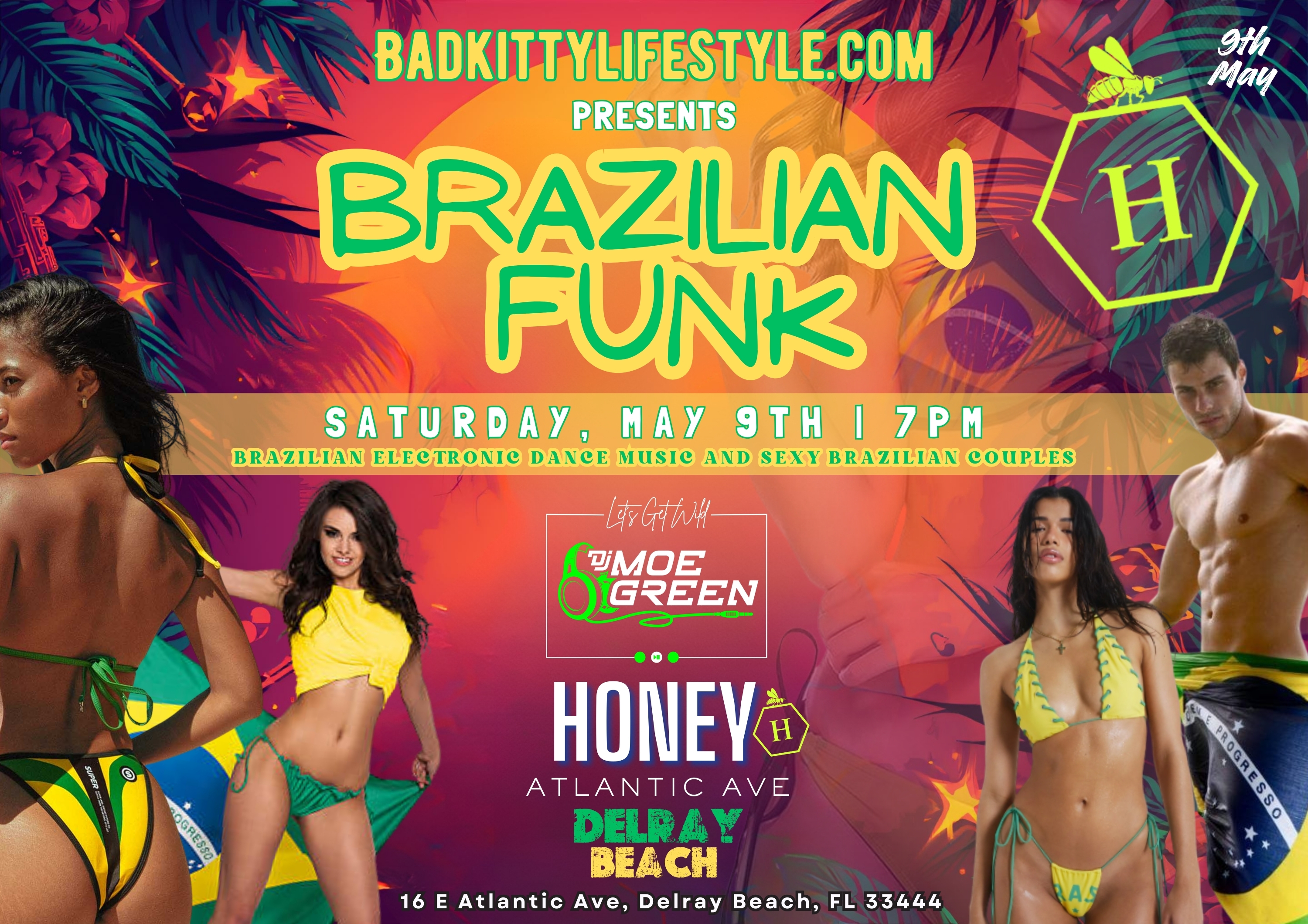 Join us as we return to Honey Delray Beach for our Monthly Meet n Greet Saturday May 09th at 7pm! This month we celebrate Brazil, with our Brazilian Funk Party! Featuring DJ Moe Green & Guest DJ Sharkman Playing Brazilian Tech House Music!